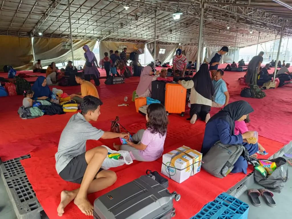 KLIKJATIM.Com | SURABAYA - Sebanyak 356 masyarakat mengikuti arus balik gratis menggunakan Kapal Perang TNI AL jenis KRI Banda Aceh 593 di Dermaga Ujung Koarmada II Surabaya pada Sabtu (13/4/2024).