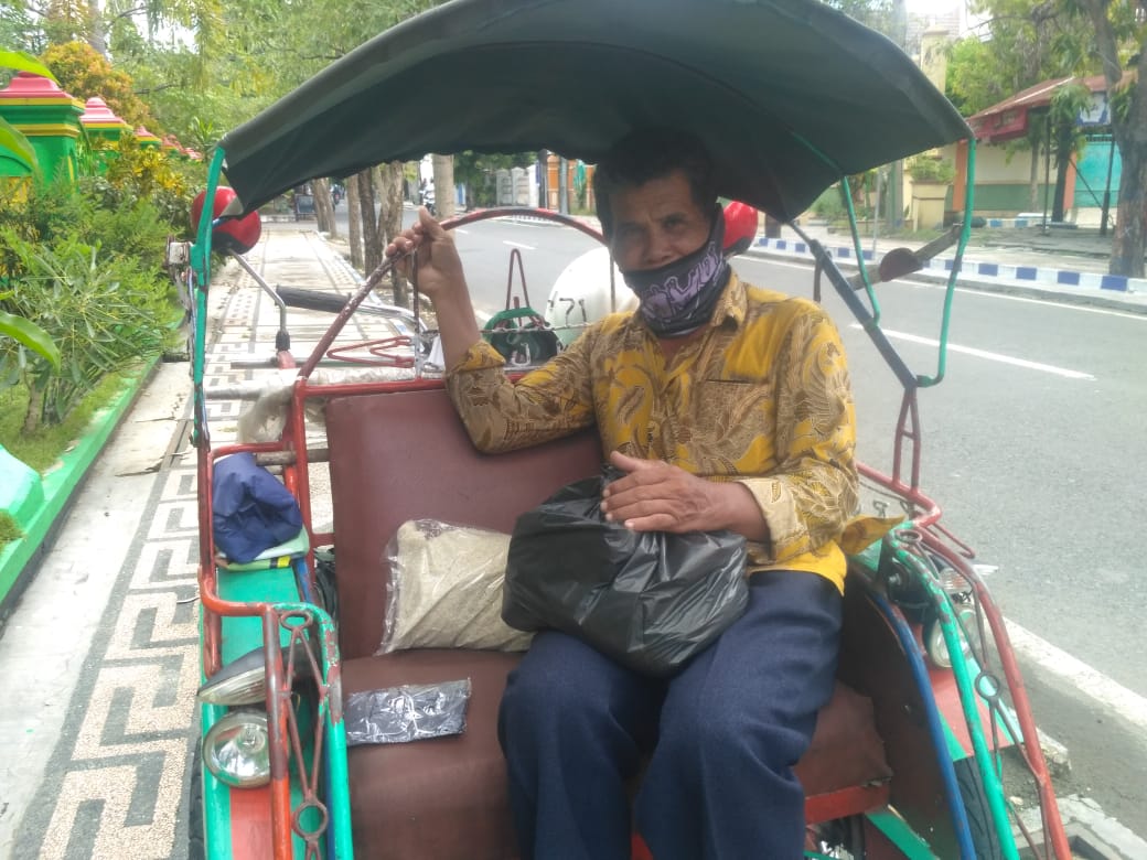 KLIKJATIM.Com | Bojonegoro - Selama pandemi Corona, banyak pekerja di berbagai sektor yang terkena dampak. Tak terkecuali tukang becak yang berada di Jalan Patimura Bojonegoro yang penghasilannya menurun drastis. Namun, mereka mendapatkan rejeki lain. Seminggu terakhir sudah ada 5 orang yang sedekah sembako.