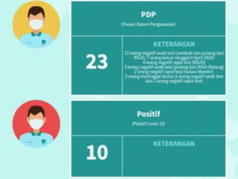 Kini totalnya menjadi 10 kasus di Kabupaten Pasuruan. Tiga di antaranya sudah terkonfirmasi lebih awal pada Jumat (10/4/2020) kemarin.