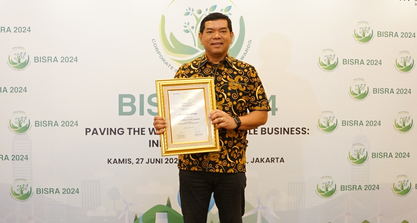 KLIKJATIM.Com | Jakarta, 29 Juni 2024 - PT Terminal Teluk Lamong (TTL) anak perusahaan PT Pelindo Terminal Petikemas meraih penghargaan Bisnis Indonesia Corporate Social Responsibility Awards (BISRA) 2024, yang berlangsung di Hotel Raffles Jakarta, Ciputra World, Karet Kuningan (27/6). Terminal Teluk Lamong meraih penghargaan di kategori “Gold” pada program unggulan yaitu “Program UMKM Kantin (Pemberdayaan UMK)”