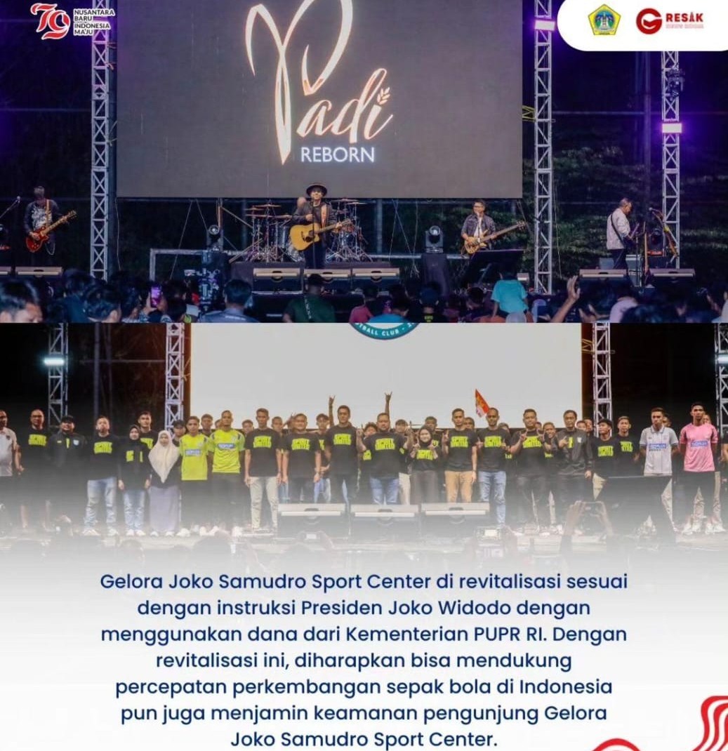 KLIKJATIM.Com | Gresik – Kabupaten Gresik mencatat sejarah baru dengan dilakukannya soft opening Stadion Gelora Joko Samudro Sport Center pasca revitalisasi fasilitas dan infrastruktur sesuai standart FIFA. Revitalisasi tersebut didanai oleh Kementerian Pekerjaan Umum dan Perumahan Rakyat (PUPR) sesuai dengan Instruksi Presiden (Inpres).