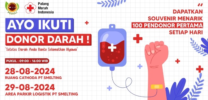 KLIKJATIM.Com | Gresik — PT Smelting menggelar kegiatan donor darah bekrja sama dengan Palang Merah Indonesia (PMI). Kegiata donor darah itu digelar pada 28 hingga 29 Agustus 2024 di area parkir logistik PT Smelting dan Ruang Chatoda.