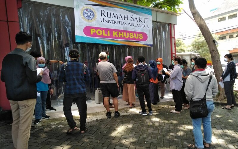 "Setiap harinya, pengunjung yang datang memeriksakan diri ke poli khusus selalu mendekati angka 100. Poli khusus masih ramai. Tapi tidak seantre waktu awal-awal yang membludak. Kuota 100 orang selalu habis, masih terpenuhi. Total sudah ada sekitar 2.000 orang lebih,” kata dr Alfian Nur Rasyid SpP Jubir Tim Satgas Covid-19 RS Unair.