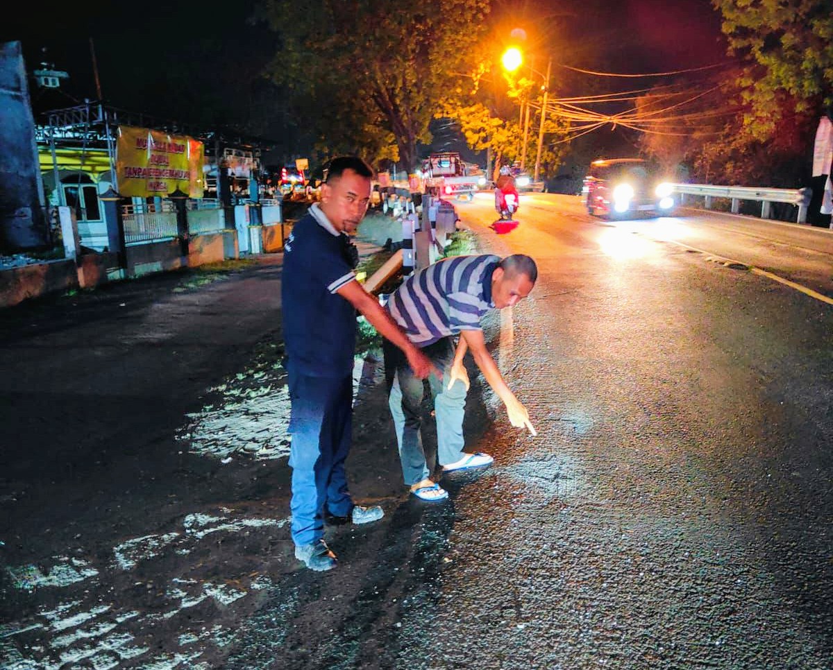 KLIKJATIM.Com | Gresik - Tumpahan minyak misterius membasahi jalan raya Manyar Gresik (Jalan Daendels), Desa Leran Kecamatan Manyar, Kabupaten Gresik pada Sabtu malam, 12 Oktober 2024. Dilaporkan, beberapa pengendara motor tergelincir saat melewati tumpahan minya tersebut.