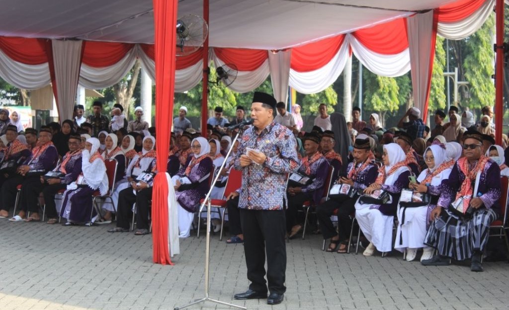 Pemberangkatan Jemaah Haji Kabupaten Gresik Tahun 1445 H / 2024 M di halaman Pemkab Gresik (Dok/Kantor Kemenag Gresik)