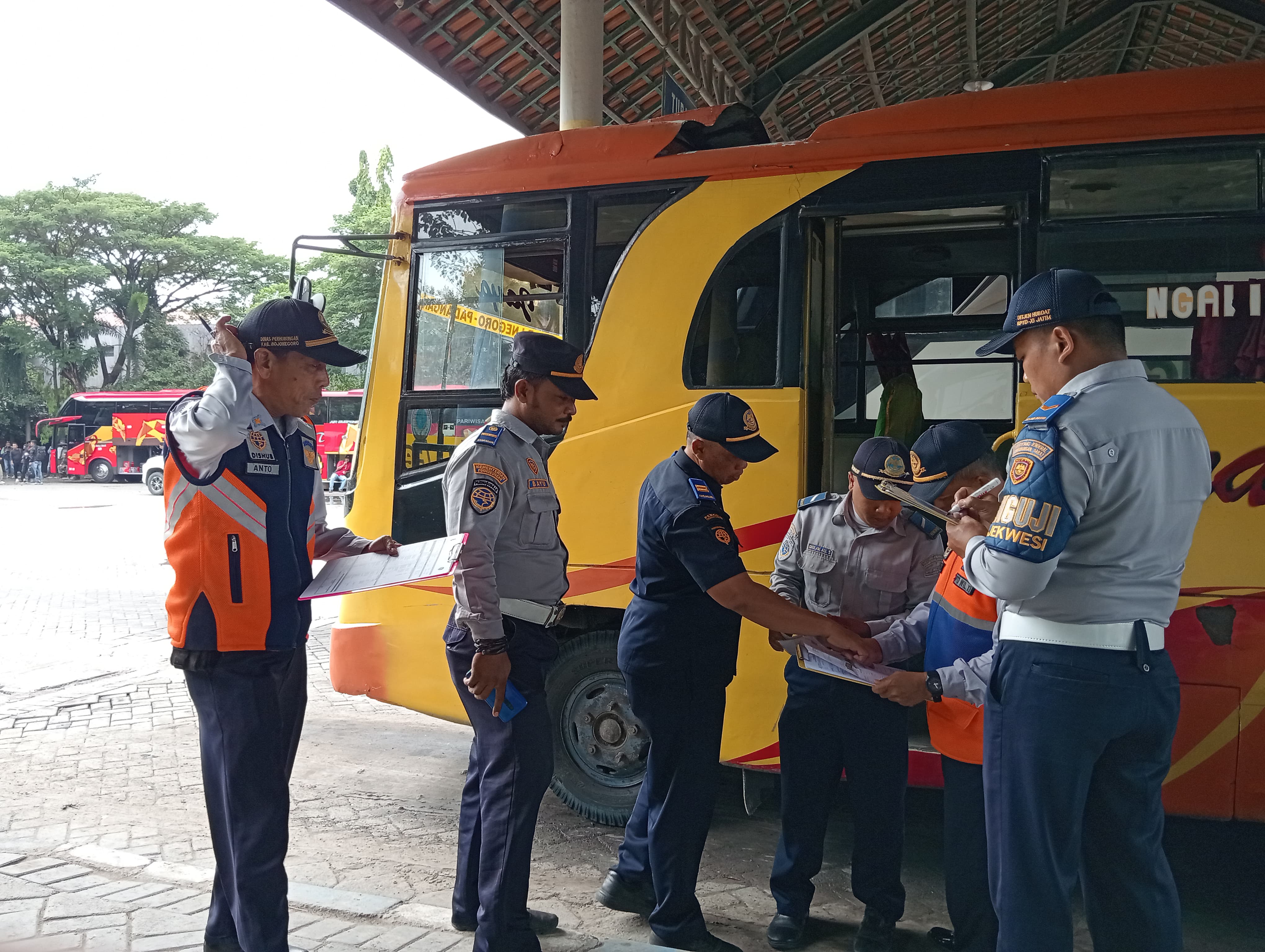 KLIKJATIM.Com | Bojonegoro - Seluruh Bus yang berada di Terminal Rajekwesi Bojonegoro diberlakukan Ramp Check. Pengecekan tersebut untuk persiapan keamanan penumpang jelang Hari Raya Natal dan Tahun Baru (Nataru) tahun 2024/2025.
