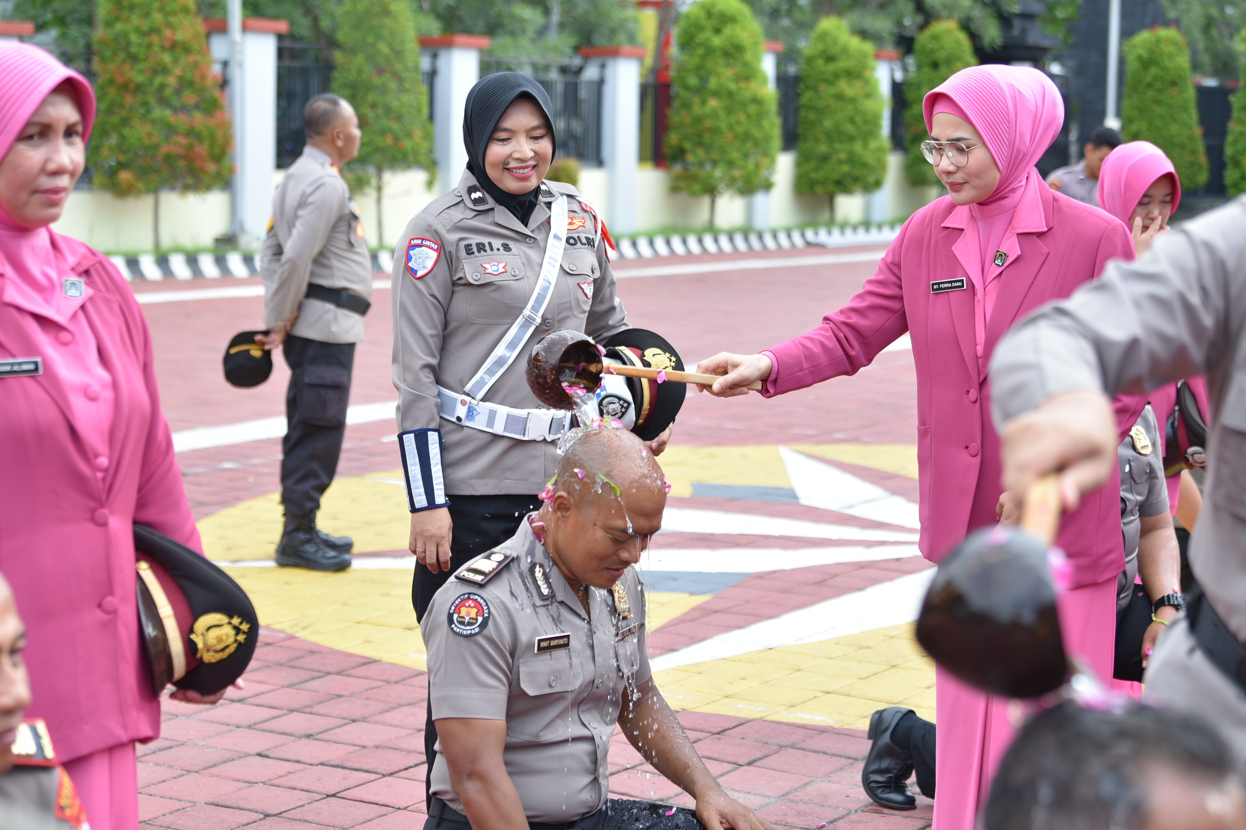 Upacara dilanjutkan dengan prosesi pemberian ucapan selamat oleh Kapolres dan jajaran kepada personel yang menerima kenaikan pangkat. Suasana penuh haru dan kebanggaan mewarnai acara, terutama di antara keluarga yang hadir menyaksikan momen bersejarah tersebut.