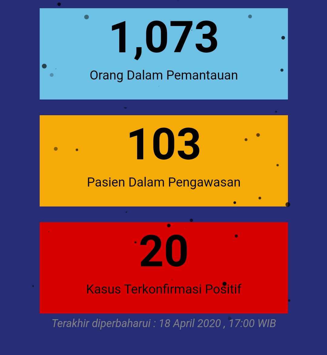 Sedangkan orang dalam pemantauan (ODP) 1.073 dengan rincian, 573 sedang dipantau, 500 selesai dipantau. (bro)
