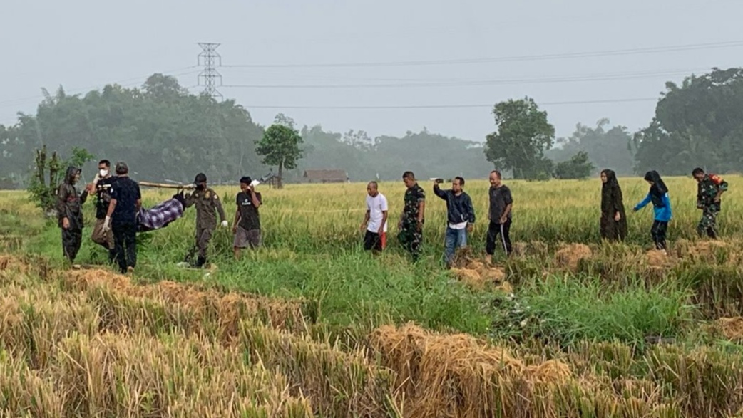 KLIKJATIM.Com | Jember – Sesosok jasad pria ditemukan membusuk di tengah sawah Dusun Kresek, Desa Pancakarya, Kecamatan Ajung, Jember, pada Sabtu (8/2/2025). Korban ditemukan dalam posisi terlentang di pematang sawah, masih mengenakan kaos berkancing berwarna gelap dan sarung bermotif garis cokelat kemerahan.