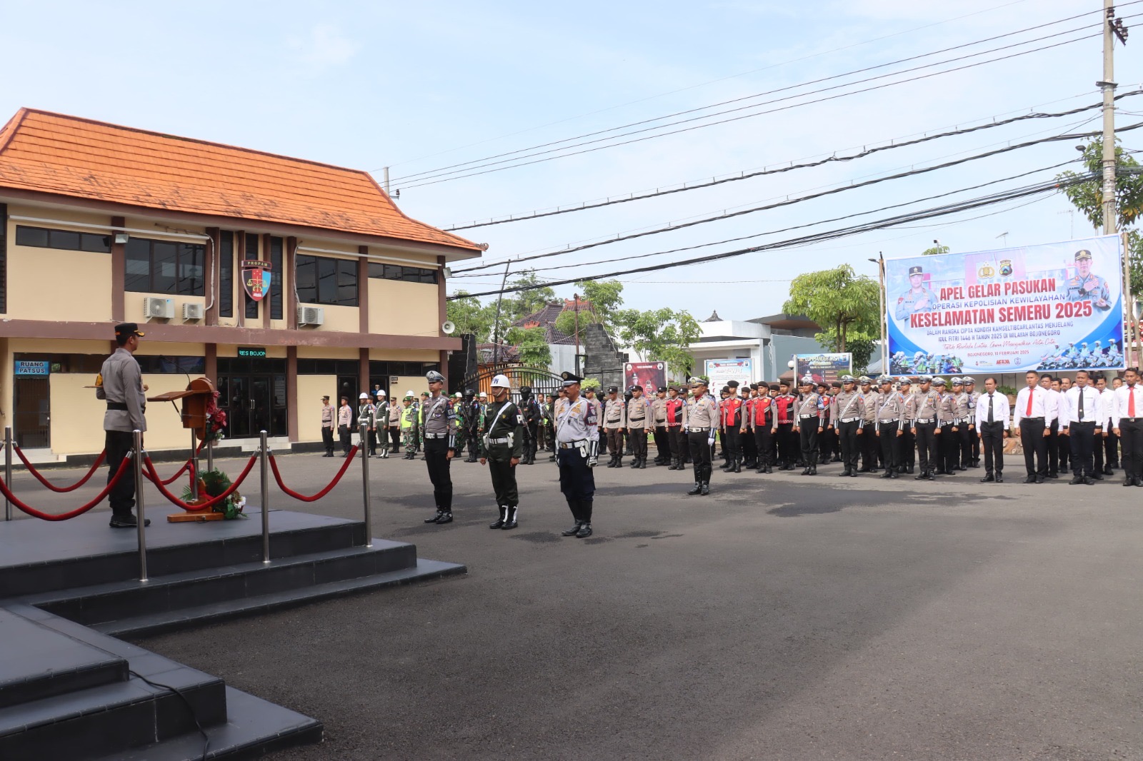 KLIKJATIM.Com | Bojonegoro - Dalam rangka menjaga keamanan, keselamatan, ketertiban, dan kelancaran lalu lintas (Kamseltibcarlantas), Polres Bojonegoro menggelar apel pasukan untuk Operasi Keselamatan Semeru 2025 di halaman Mapolres Bojonegoro, Senin (10/2/2025). Operasi ini akan berlangsung selama 14 hari, mulai 10 hingga 23 Februari 2025, dengan fokus utama pada edukasi dan penegakan disiplin berlalu lintas.