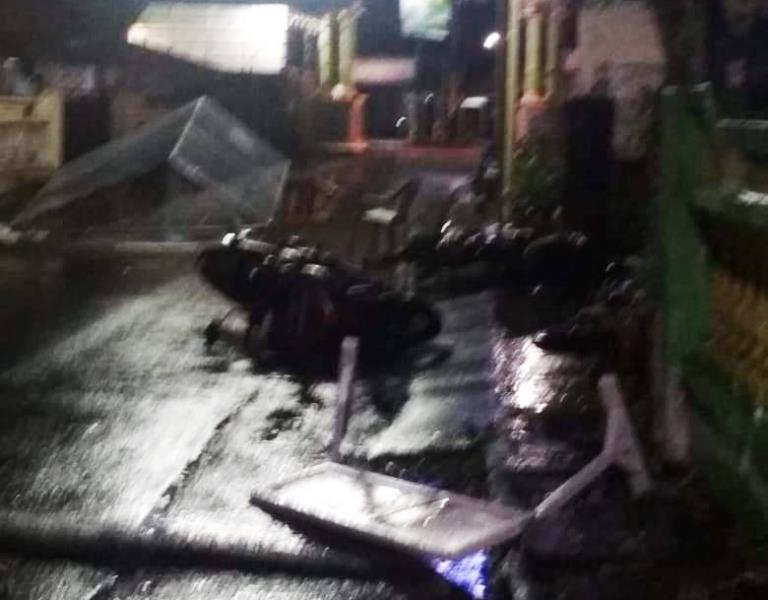 Sontak petugas yang berjaga di Posko lari tunggang langgang. Posko dan bilik disinfektan hancur, serta beberapa motor roboh di pinggir jalan.