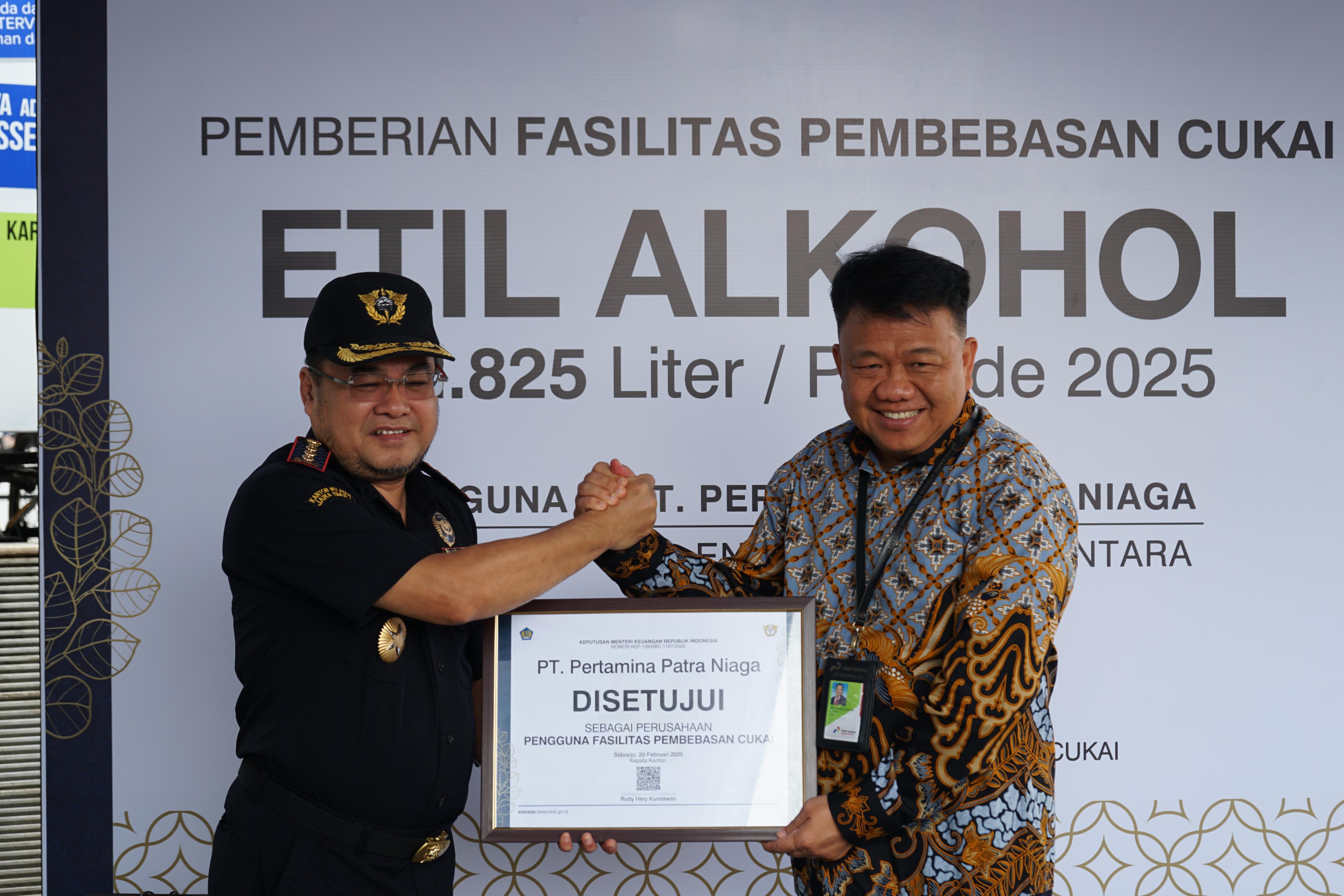 Bertempat di kantor Pertamina Patra Niaga (PPN) Integrated Terminal Tanjung Perak Surabaya, Kepala Kantor Bea Cukai Sidoarjo Rudy Hery Kurniawan, menyerahkan Surat Keputusan Pembebasan Cukai atas Etil Alkohol kepada PT Energi Agro Nusantara (Enero) Mojokerto dan Surat Keputusan Penggunaan Barang Kena Cukai dengan Pembebasan Cukai kepada Pertamina Patra Niaga Surabaya.