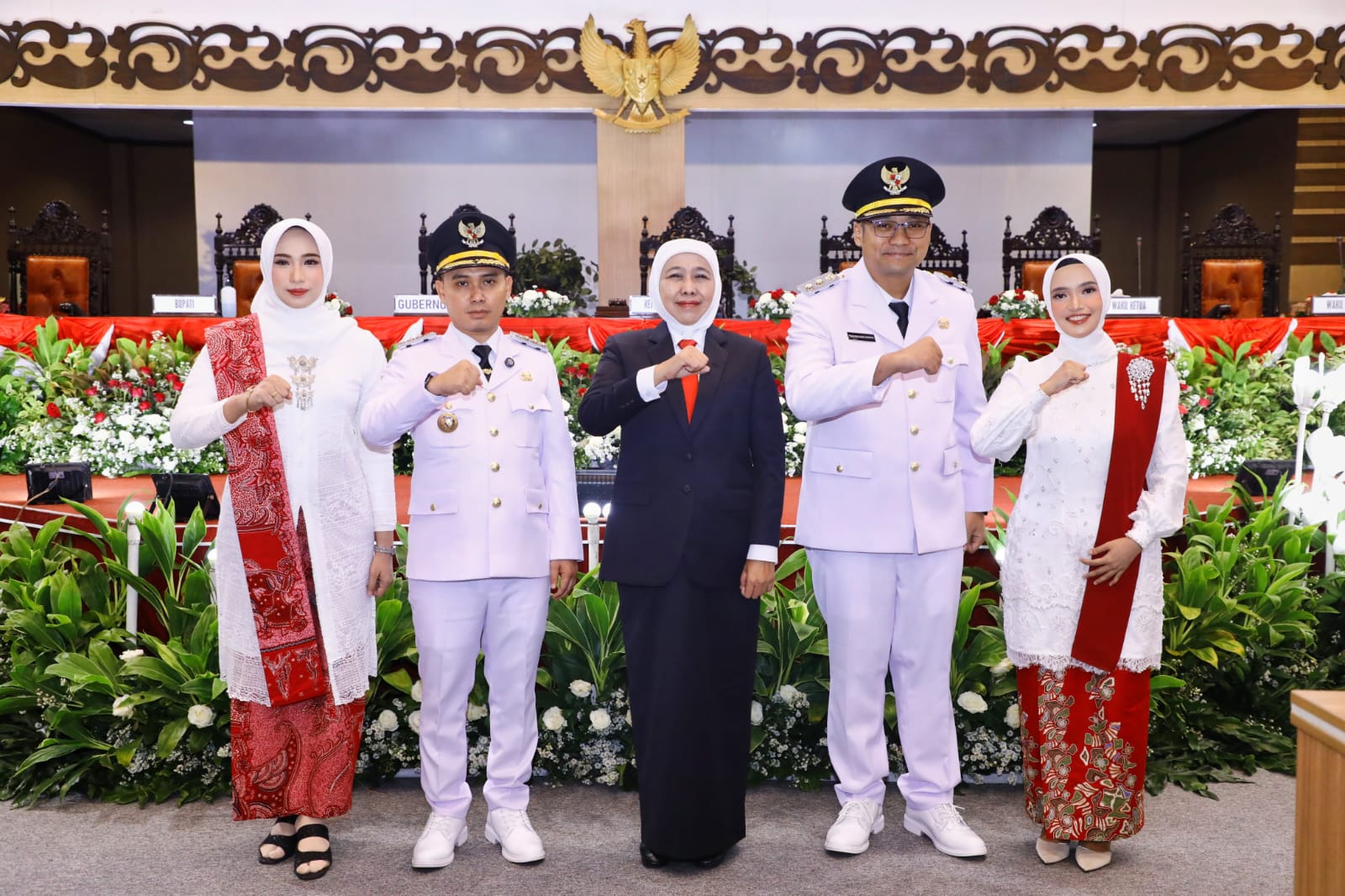 KLIKJATIM.Com | KAB. MOJOKERTO - Gubernur Jawa Timur Khofifah Indar Parawansa menghadiri Serah Terima Jabatan (Sertijab) Bupati Mojokerto Muhammad Albarraa dan Wakil Bupati Mojokerto Muhammad Rizal Octavian masa jabatan 2025-2030 di Gedung DPRD Kabupaten Mojokerto, Rabu (5/3).