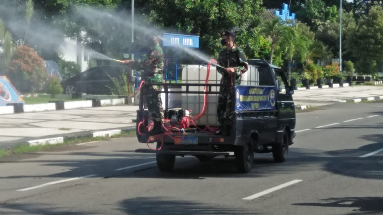 "Dan salah satu cara yang sudah sering dilakukan yaitu dengan penyemprotan cairan desinfektan, " kata Paban Ren Sops Lantmal V. (hen)