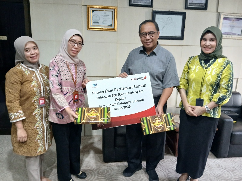 KLIKJATIM.Com | Gresik - PT Bank Pembangunan Daerah Jawa Timur (bankjatim) kembali menunjukkan kepeduliannya kepada masyarakat Gresik dengan menyerahkan bantuan berupa 600 pcs sarung. Bantuan tersebut diserahkan kepada Pemerintah Kabupaten Gresik untuk kegiatan donasi dalam rangka Safari Ramadan.