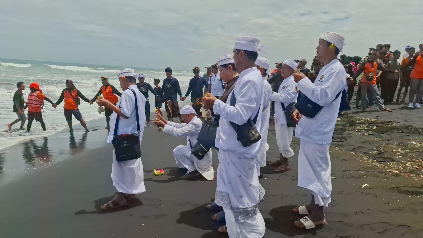 "Hari ini adalah Upacara Sesuci Laut. Kami membawa sesajen berisi hasil bumi untuk dilarung ke laut Pantai Selatan. Ini merupakan upacara penyucian diri sebelum kami melaksanakan Perayaan Nyepi," ujar Wahyu kepada wartawan.