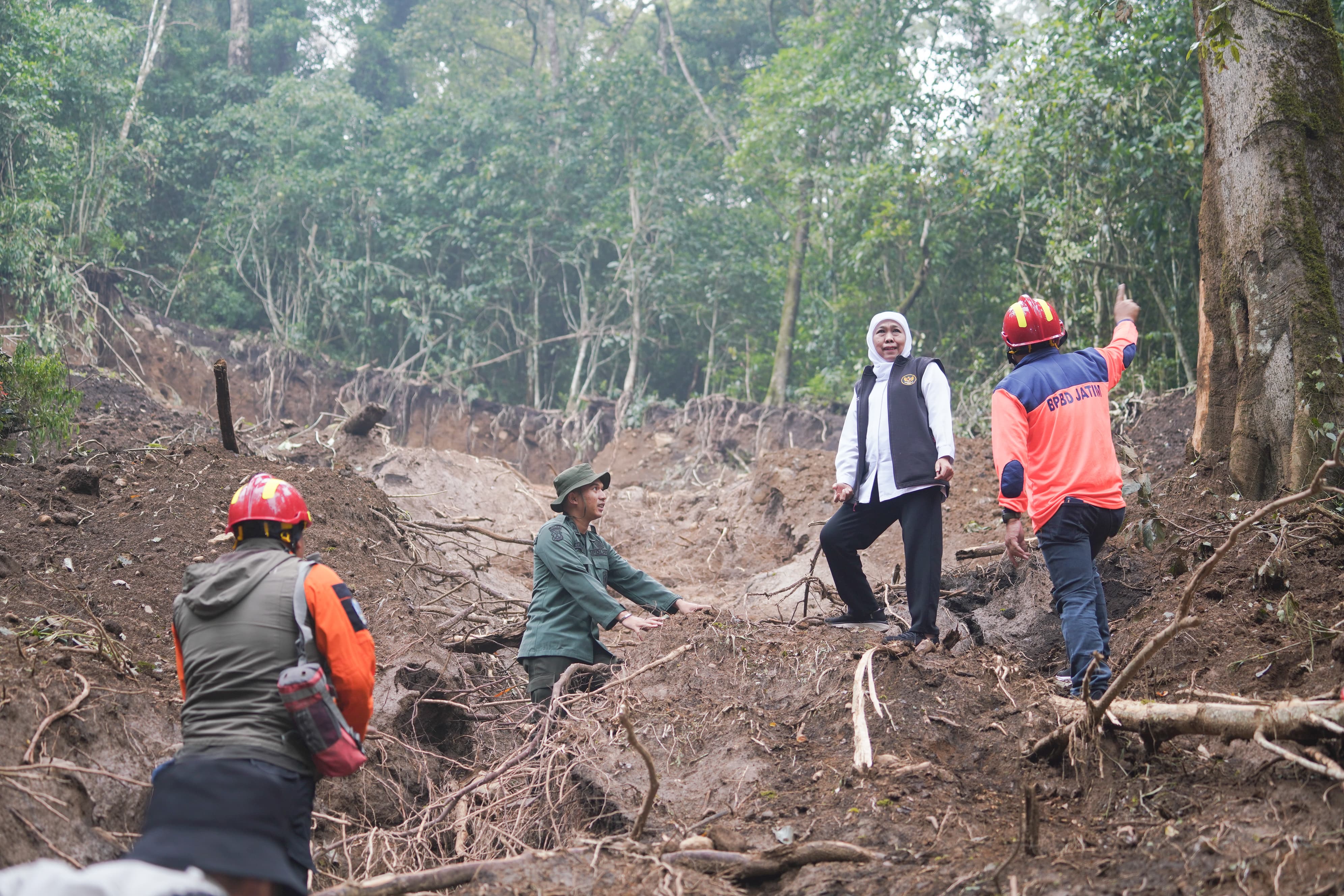 Khofifah bilang, longsor disebabkan oleh tersumbatnya aliran sungai akibat pohon tumbang, yang kemudian menyebabkan kejenuhan air saat hujan deras mengguyur wilayah tersebut.