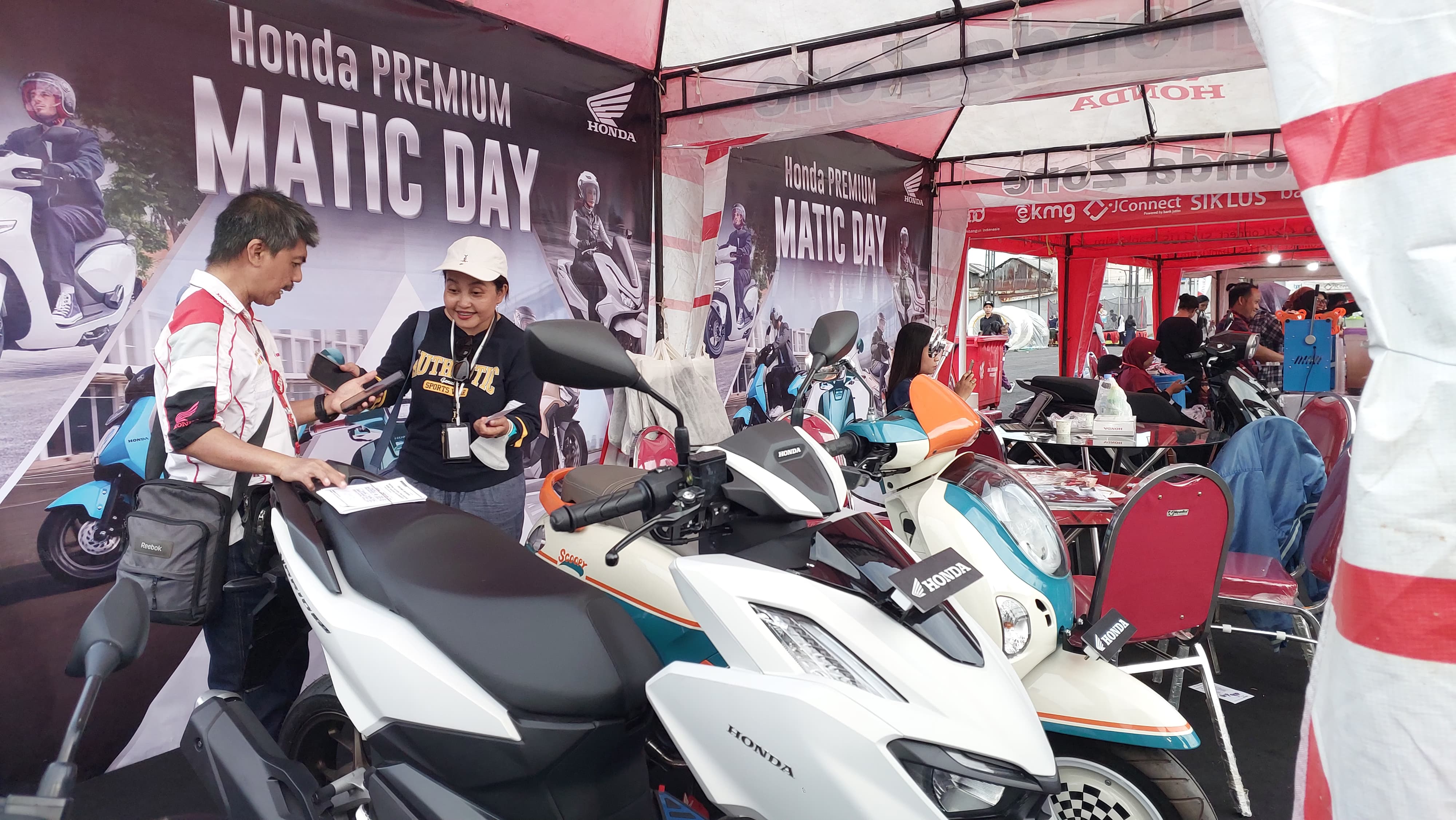 Booth Honda juga menjadi tempat favorit untuk berfoto berkat desain visualnya yang berwarna cerah dan mencerminkan semangat kebudayaan lokal. Selain itu, pengunjung juga mendapatkan kesempatan untuk berkonsultasi seputar pembelian motor Honda serta informasi promo menarik selama acara berlangsung.