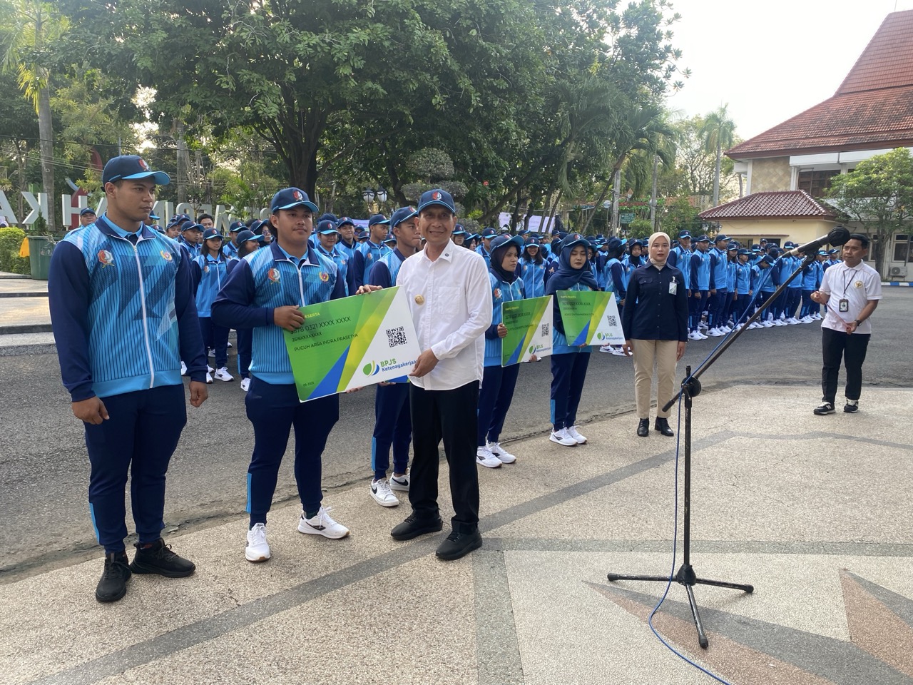 KLIKJATIM.Com | Bojonegoro - Pemerintah Kabupaten (Pemkab) Bojonegoro secara resmi melepas 329 atlet kontingen yang tengah berjuang mengharumkan nama Bumi Angling Darma di ajang Pekan Olahraga Provinsi (Porprov) IX Jawa Timur 2025. Selain itu para atlit Bojonegoro ini juga diberikan kartu kepesertaan BPJS Ketenagakerjaan Bojonegoro untuk terlindungi jaminan sosial.
