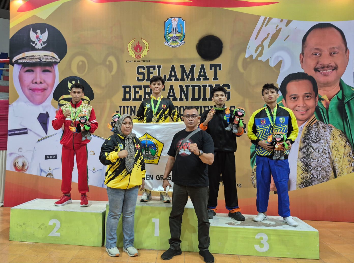 “Kami juga sangat berterima kasih kepada KONI Kabupaten Gresik, Bu Ketua Umum, Bupati dan Wakil Bupati, atas dukungan mereka yang luar biasa. Tanpa mereka, pencapaian ini tak akan mungkin terwujud,” tambahnya.
