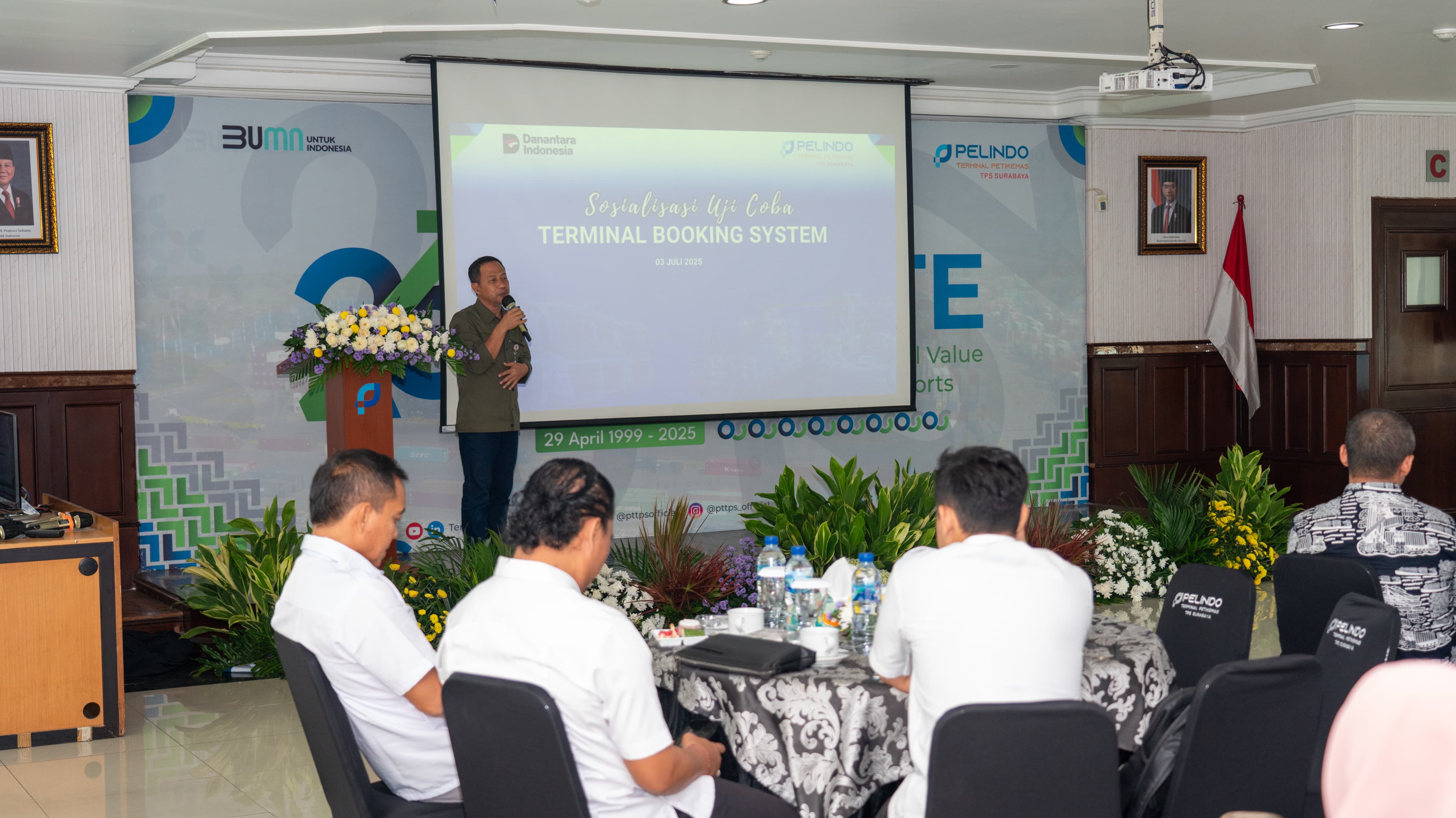 KLIKJATIM.Com | Surabaya – PT Terminal Petikemas Surabaya (TPS), anak perusahaan dari Subholding Pelindo Terminal Petikemas (SPTP), melaksanakan sosialisasi uji coba Terminal Booking System (TBS) kepada pelanggan dan asosiasi pengguna jasa logistik. Inisiatif ini merupakan bagian dari komitmen TPS untuk meningkatkan efisiensi operasional serta memperlancar arus logistik nasional.