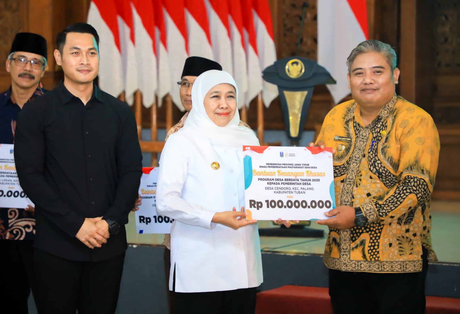KLIKJATIM.Com | Tuban — Gubernur Jawa Timur Khofifah Indar Parawansa menyalurkan berbagai program bantuan sosial senilai total Rp6.532.818.800 untuk masyarakat Kabupaten Tuban. Penyerahan bantuan dilangsungkan di Pendopo Kridhomanunggal, Senin (21/7), sebagai bagian dari upaya memperkuat perlindungan sosial dan ekonomi bagi kelompok rentan.