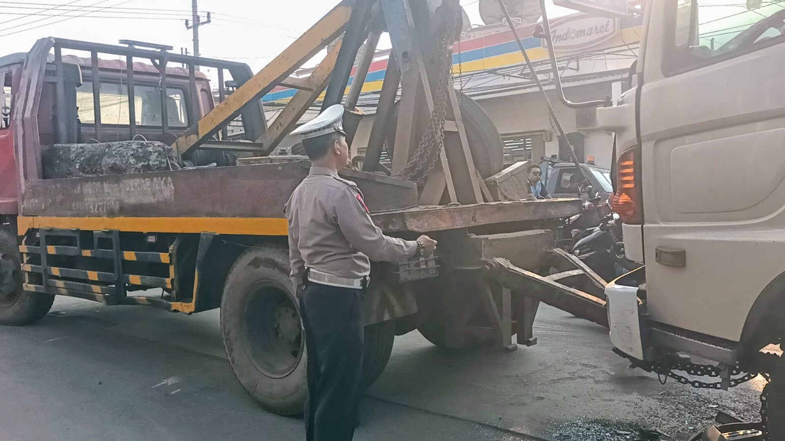 Tak lama kemudian, di belakang truk tersebut melaju mobil Suzuki Ertiga bernopol S 1245 YZ yang dikemudikan Indra (27), warga Desa Pudakit Timur, Kecamatan Sangkapura, Bawean, Gresik. Kecelakaan beruntun pun tidak terhindarkan.