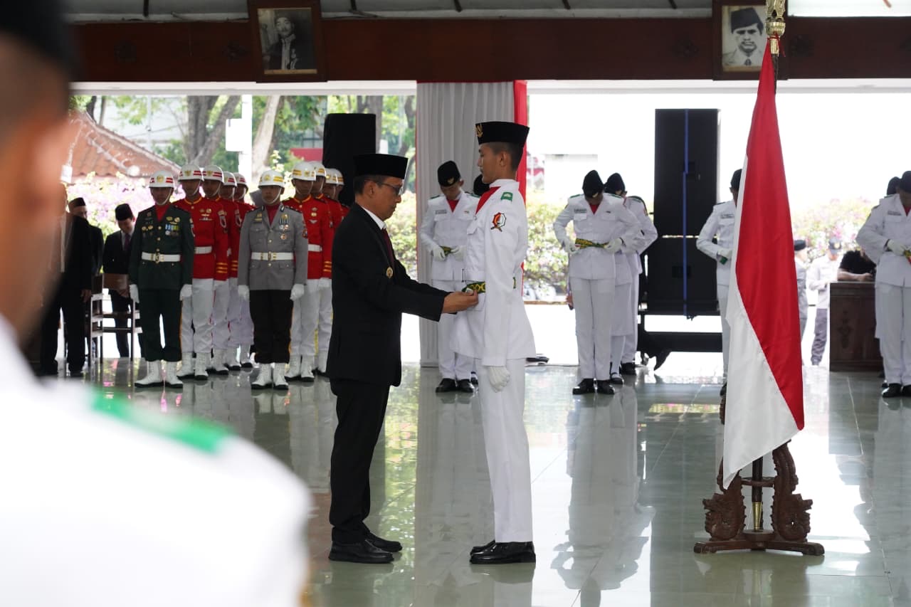 KLIKJATIM.Com | Bojonegoro – Sebanyak 72 putra-putri terbaik Kabupaten Bojonegoro resmi dikukuhkan sebagai Pasukan Pengibar Bendera Pusaka (Paskibraka) untuk Upacara Kemerdekaan ke-80 Republik Indonesia. Pengukuhan yang berlangsung khidmat di Pendopo Malowopati ini menandai kesiapan mereka untuk mengibarkan Sang Saka Merah Putih pada 17 Agustus 2025.