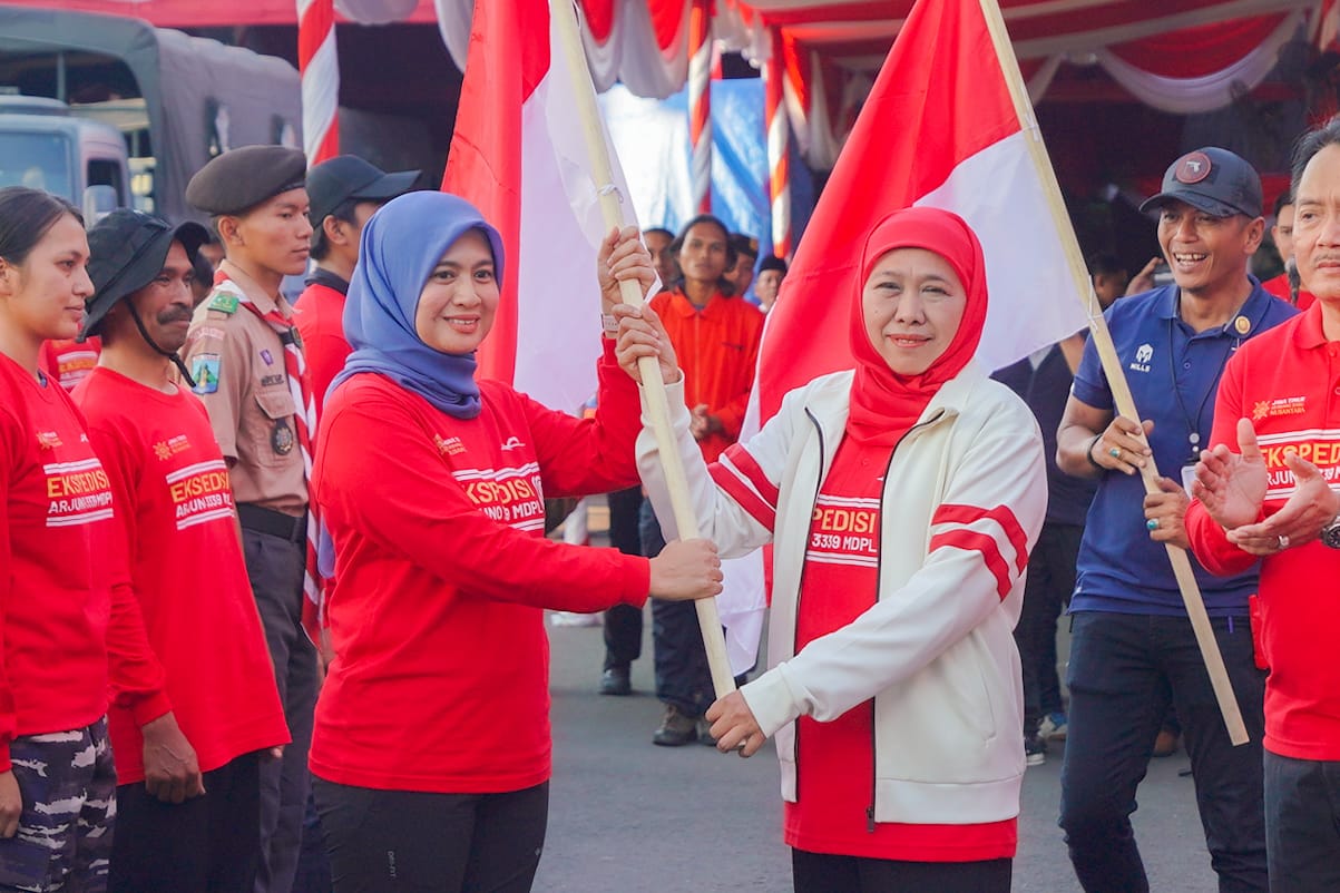 KLIKJATIM.Com | Surabaya – Gubernur Jawa Timur, Khofifah Indar Parawansa, secara resmi memberangkatkan 361 tim Ekspedisi 80 Arjuno dari halaman Gedung Negara Grahadi, Surabaya, Jumat (15/8). Ekspedisi ini diadakan untuk menyambut HUT ke-80 Kemerdekaan RI.