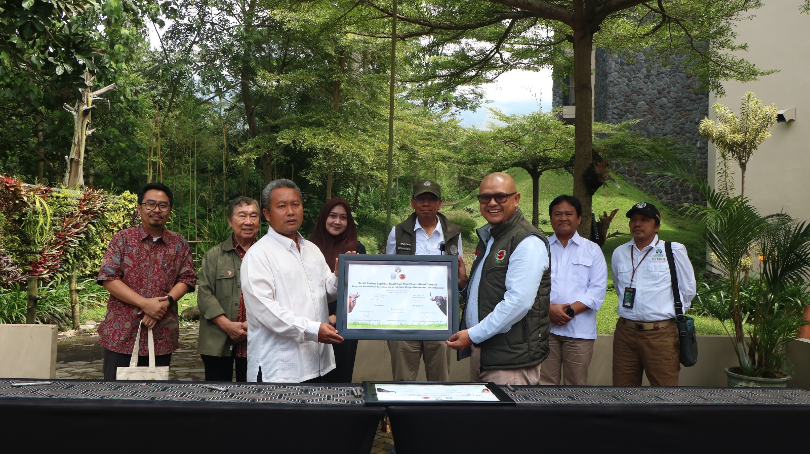 Secara Simbolis, serah terima 3 Sapi Bali hasil riset revitalisasi genetik dengan Banteng Jawa dan 3 sapi bali murni diberikan kepada Masyarakat peternak binaan PT Smelting.