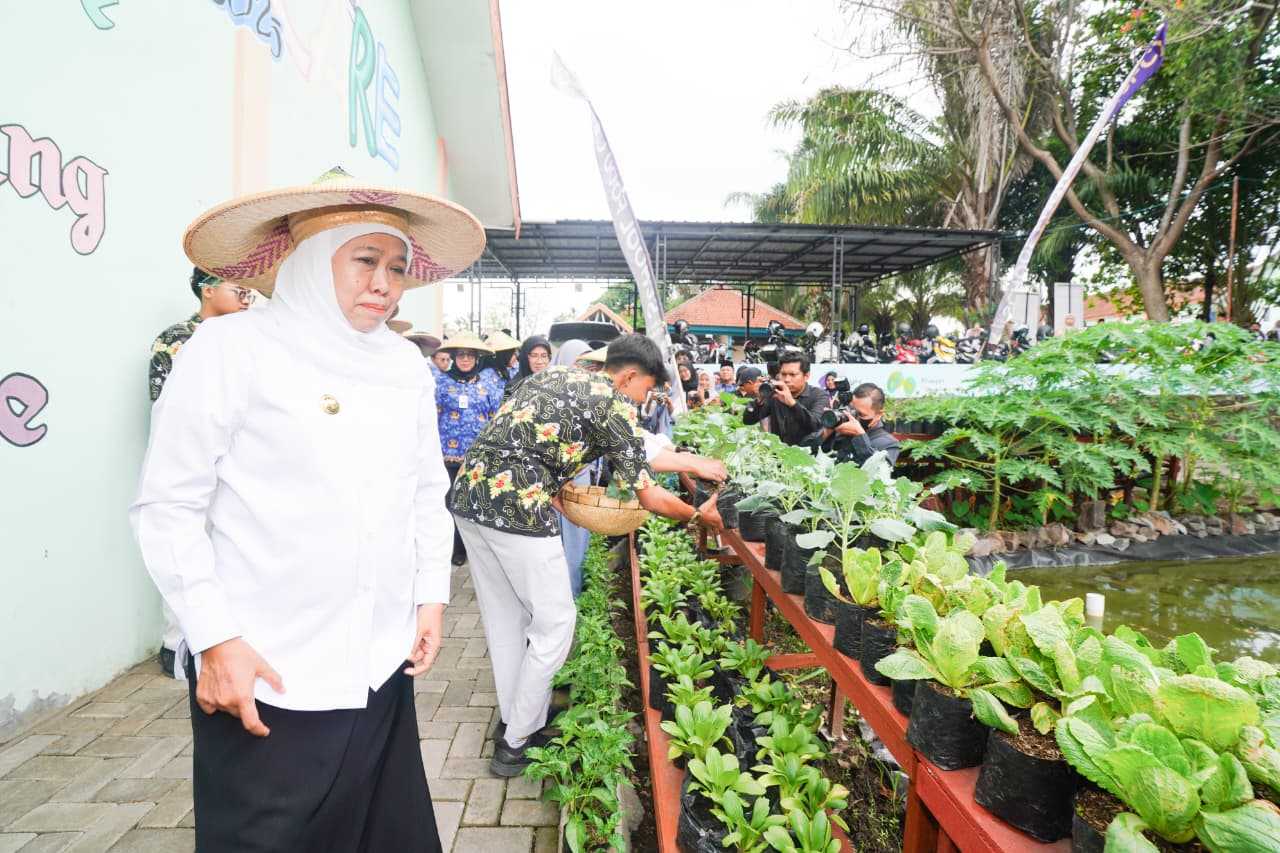 Didampingi Kepala Dinas Pendidikan Provinsi Jawa Timur, Aries Agung Paewai, Gubernur Khofifah mendorong agar program ketahanan pangan berbasis sekolah ini dapat menjadi inspirasi dan percontohan nasional bagi pendidikan berkelanjutan.