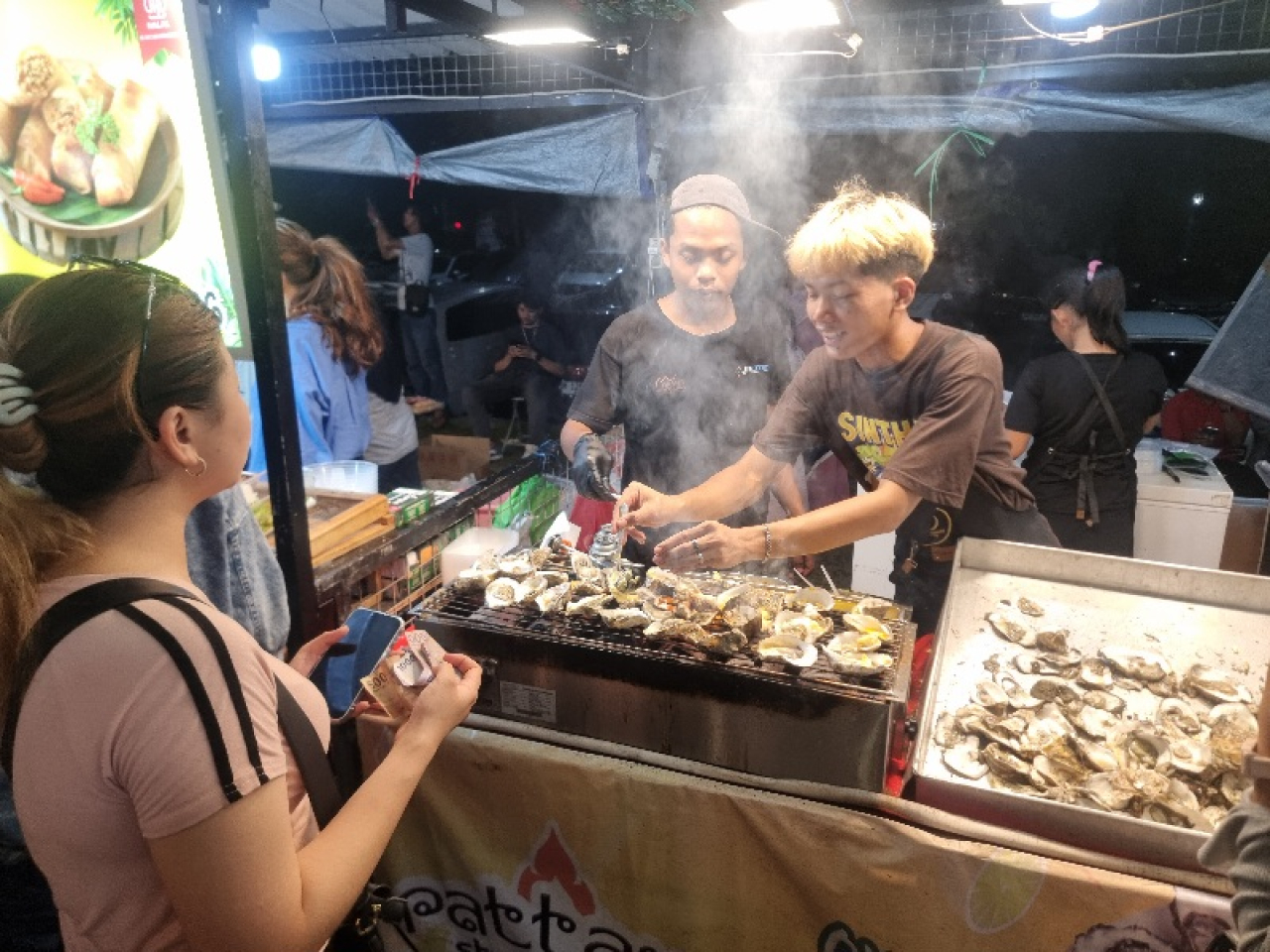 Sejak siang hingga malam hari, suasana festival tampak ramai. Antrean panjang terlihat di sejumlah stan populer, terutama yang menawarkan hidangan laut dan makanan pedas khas Thailand.