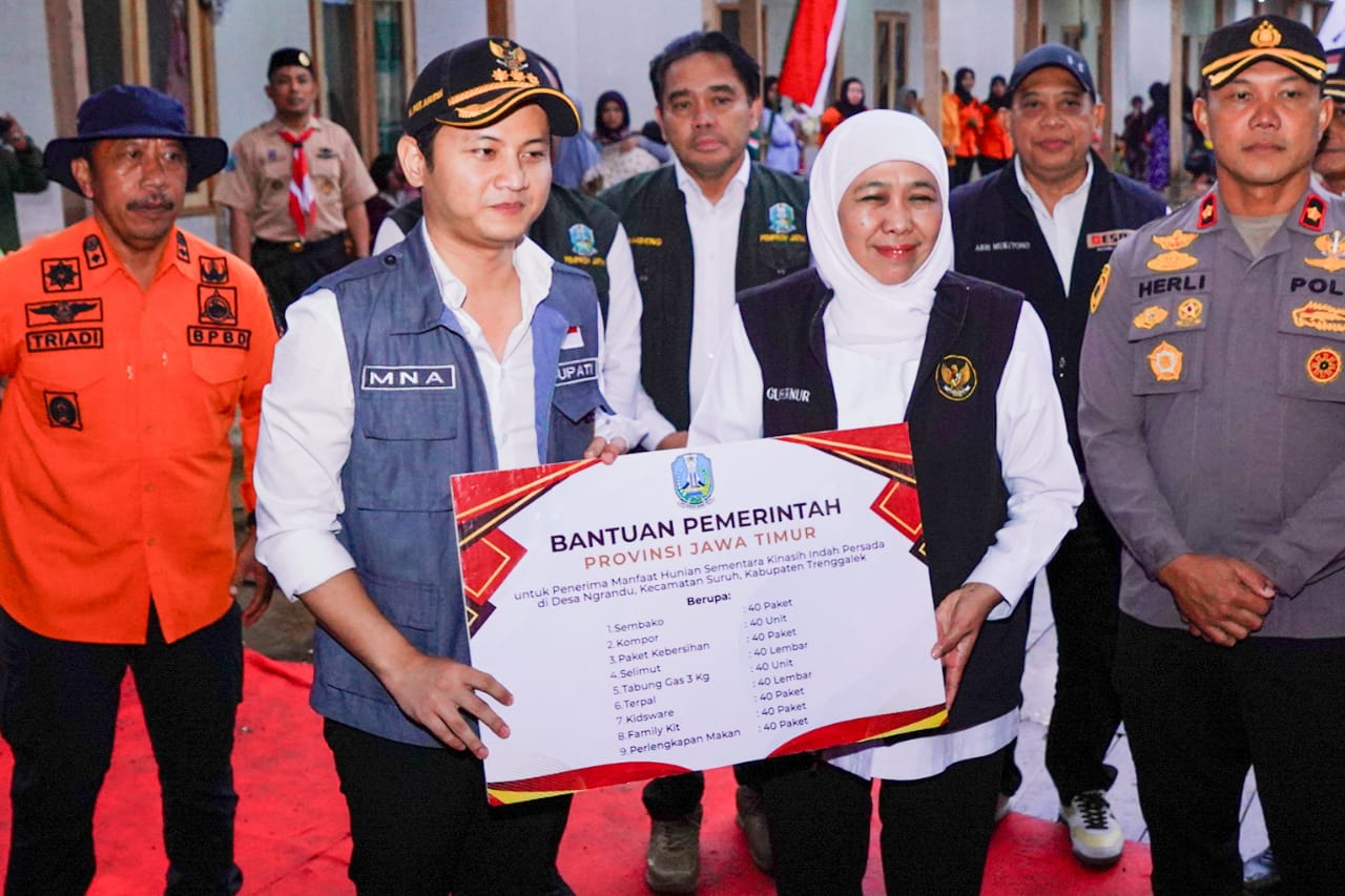 KLIKJATIM.Com | Trenggalek– Gubernur Jawa Timur Khofifah Indar Parawansa meresmikan hunian sementara (huntara) bernama Kinasih Indah Persada di Desa Ngrandu, Kecamatan Suruh, Kabupaten Trenggalek, pada Kamis (4/12). Peresmian ini menandai lembaran baru bagi 43 kepala keluarga (KK) yang kehilangan rumah akibat bencana tanah gerak pada 17 Desember 2024.