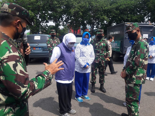KLIKJATIM.Com | Surabaya - Kegiatan dapur umum yang dibangun Lantamal V Surabaya ditinjau Gubernur Jawa Timur, Khofifah Indar Parawansa bersama Panglima Komando Armada II Laksda TNI Heru Kusmanto.