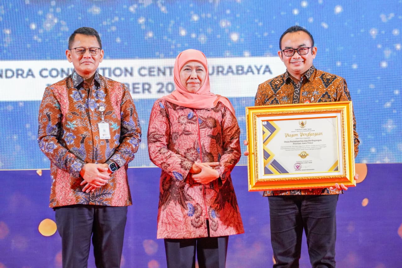 KLIKJATIM.Com | Surabaya – Gubernur Jawa Timur Khofifah Indar Parawansa menyerahkan Penghargaan Pelayanan Publik, Akuntabilitas Kinerja, Zona Integritas, dan Budaya Kerja Tahun 2025 kepada perangkat daerah di lingkungan Pemprov Jatim. Acara berlangsung di Dyandra Convention Center Surabaya, Kamis (11/12), dan turut dihadiri Deputi Bidang Pelayanan Publik KemenPANRB, Otok Kuswandaru.