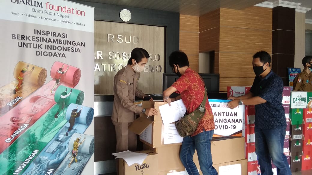 KLIKJATIM.Com l Bojonegoro - Bakti Sosial Djarum Foundation kembali memberikan donasi berupa Alat Perlindungan Diri (APD) ke sejumlah rumah sakit guna penanganan pasien virus Corona atau Covid-19. Donasi kali ini diberikan ke RSUD Dr Sosodoro Djatikoesumo Bojonegoro dan RSUD Provinsi NTB, Senin (4/5/2020).