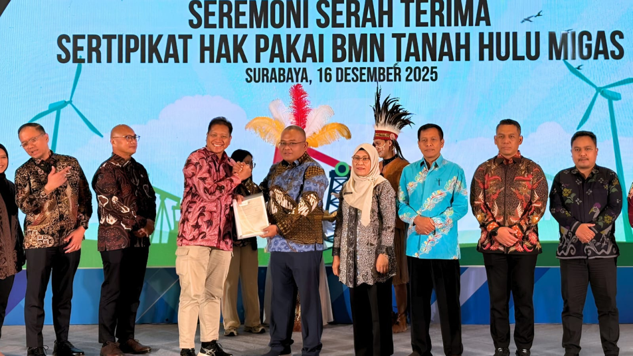 Melalui sebuah seremoni di Hotel JW Marriott Surabaya pada Selasa (16/12), BPN Jatim menyerahkan 13 Sertipikat Hak Pakai (SHP) atas Barang Milik Negara (BMN) berupa tanah hulu minyak dan gas (migas).