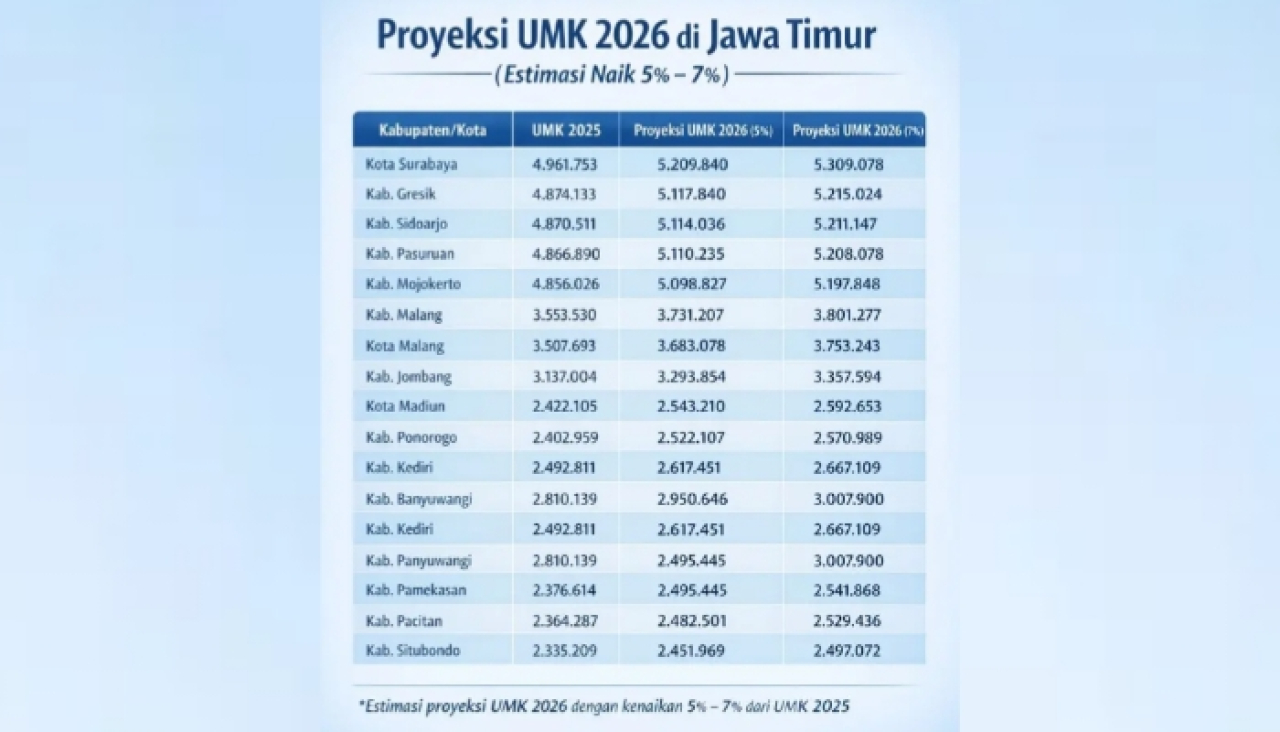 Meski demikian, Eko menegaskan bahwa besaran UMK 2026 tersebut masih berstatus usulan dan belum dapat diumumkan secara resmi karena menunggu penetapan dari Pemerintah Provinsi Jawa Timur.
