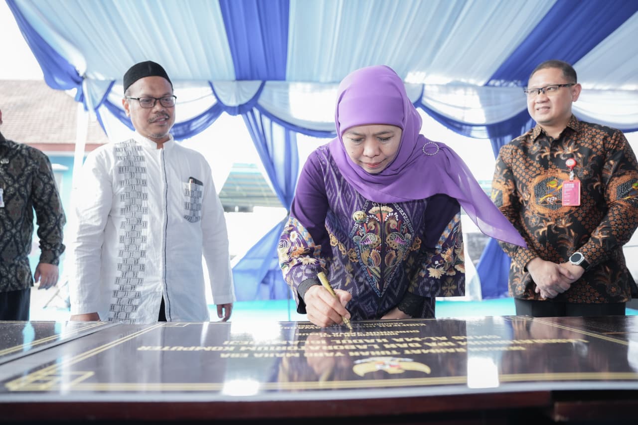 Gubernur Khofifah menyampaikan peresmian sarana prasarana fasilitas penunjang ini menjadi bukti nyata Pemerintah Provinsi Jawa Timur dalam mencetak generasi emas berkarakter.