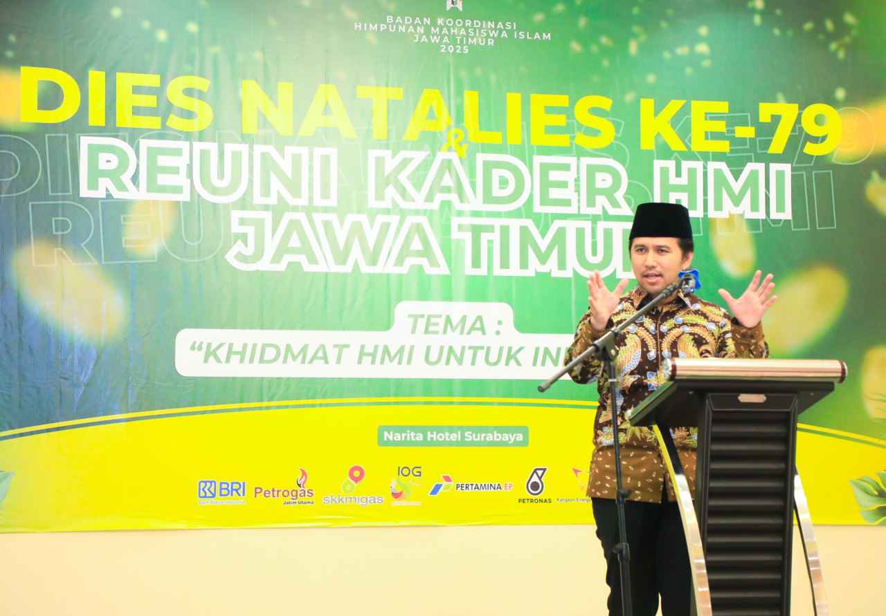 KLIKJATIM.Com | Surabaya – Wakil Gubernur Jawa Timur Emil Elestianto Dardak menghadiri peringatan Dies Natalis ke-79 sekaligus reuni kader Himpunan Mahasiswa Islam (HMI) yang digelar oleh Badan Koordinasi (Badko) HMI Jawa Timur di Hotel Narita, Senin (9/3/2026).