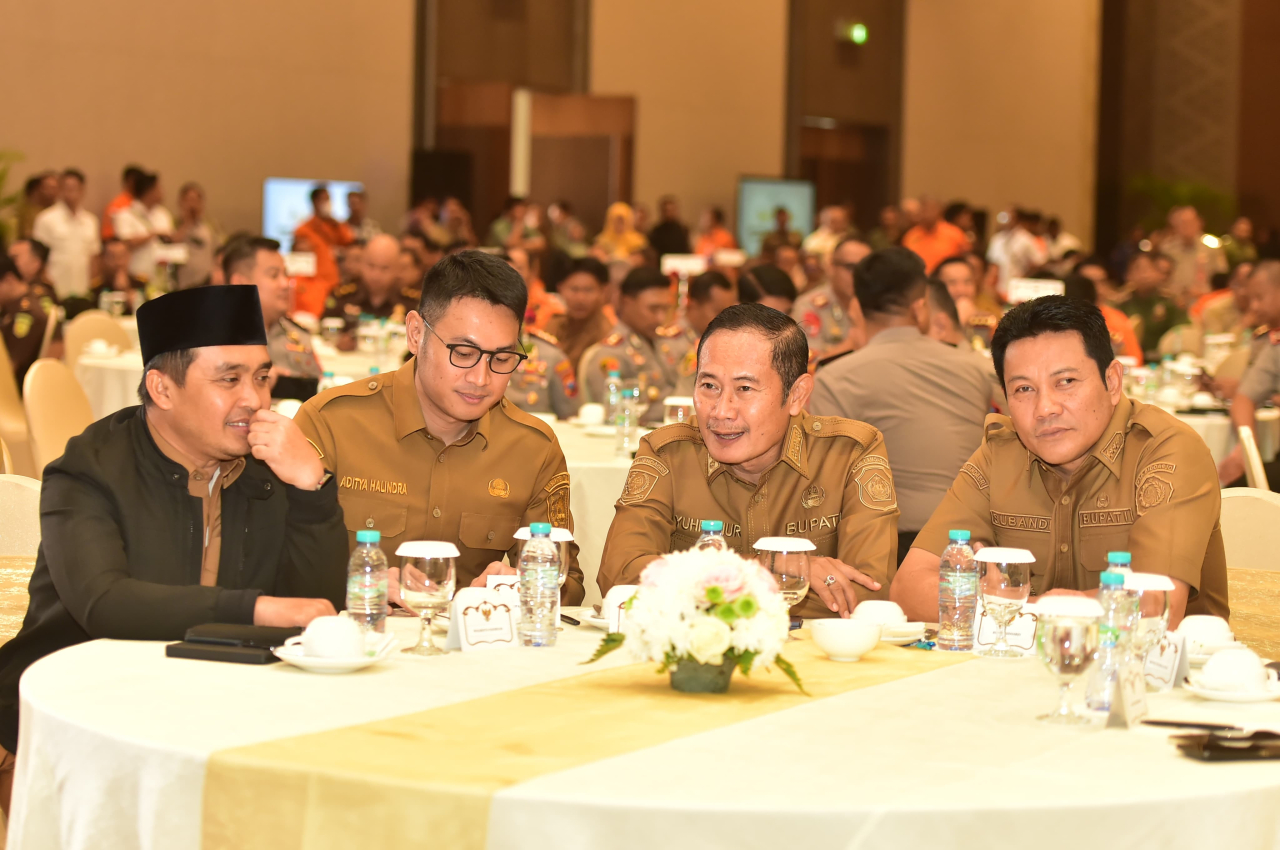 Bupati Lamongan, Yuhronur Efendi, hadir langsung dalam Rapat Koordinasi (Rakor) Penanganan Dampak Hidrometeorologi dan Potensi Bencana Musim Kemarau Jawa Timur Tahun 2026 yang digelar di Dyandra Convention Center, Selasa (7/4/2026).