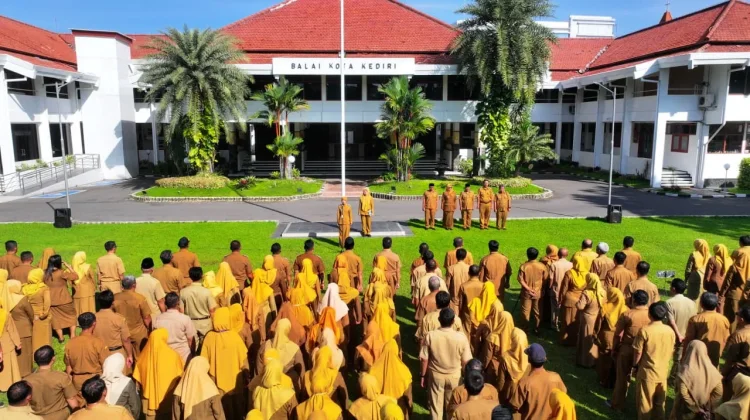 "Saya sampaikan selamat dan sukses kepada Bapak Ibu yang hari ini menerima SK Kenaikan Pangkat. Bapak Ibu harus tetap punya kemauan untuk belajar dan jangan pernah merasa puas," kata Wali Kota Kediri, Vinanda Prameswati, saat menyerahkan SK Kenaikan Pangkat periode 1 April 2026 kepada 276 ASN, pada agenda Apel Pagi di Halaman Balai Kota Kediri, Senin, 13 April 2026.