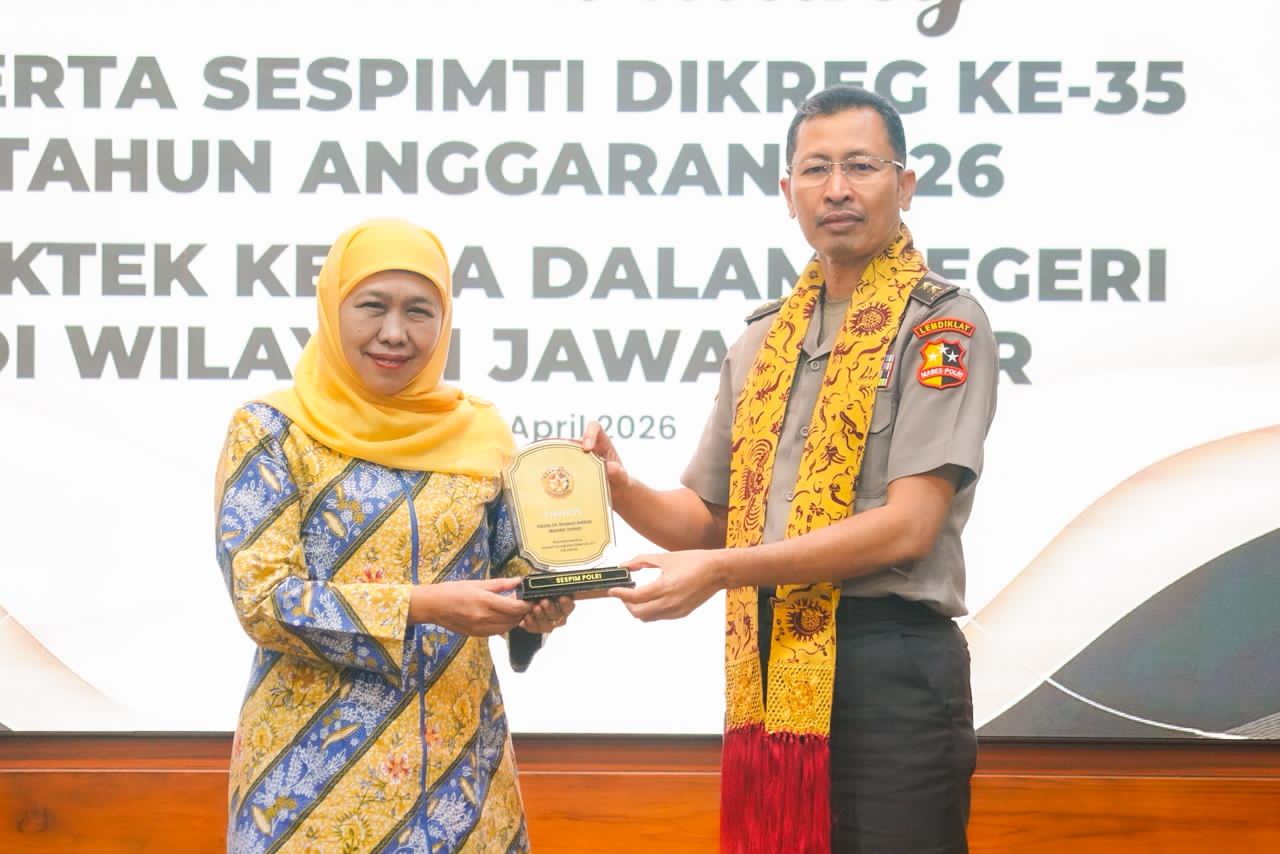 Hal tersebut disampaikan Gubernur Khofifah saat menerima kunjungan Peserta Sekolah Staf dan Pimpinan Tinggi (SESPIMTI) Pendidikan Reguler (DIKREG) Polri ke-35 Tahun Anggaran 2026 di Gedung Negara Grahadi, Surabaya, Selasa (14/4).