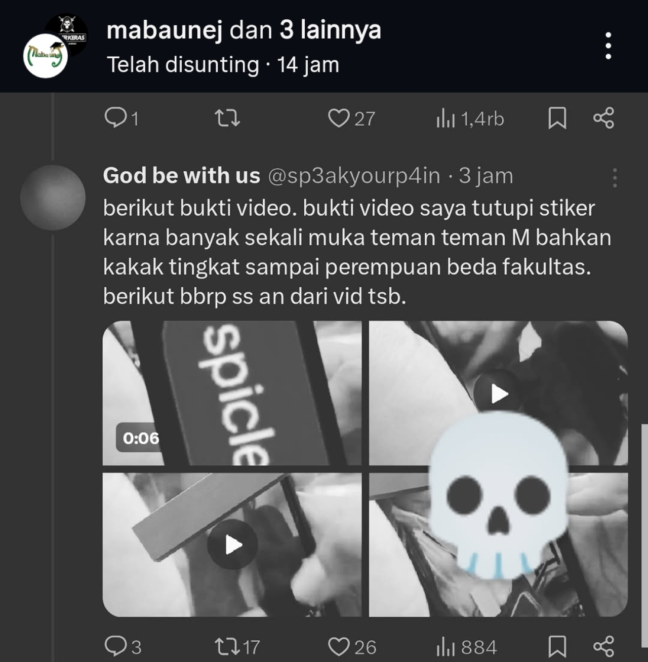 Informasi tersebut tersebar di sejumlah platform, seperti X dan Instagram. Dalam unggahan yang beredar, terduga pelaku disebut berinisial JEM, mahasiswa angkatan 2023 yang dikabarkan berasal dari Fakultas Hukum.