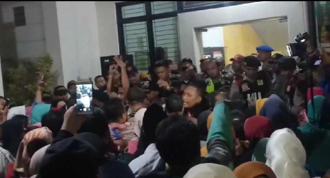 Aksi saling dorong sempat terjadi. Kepala Dispendik Surabaya, Ikhsan nampak menemui para wali murid yang sedang berunjuk rasa.