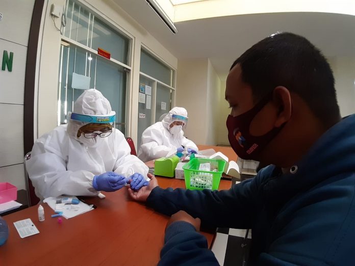 KLIKJATIM.Com | Malang - Sebanyak 64 anggota Polresta Malang dan 51 wartawan di Kota Malang mengikuti pemeriksaan rapid tes di masa Pembatasan Sosial Berskala Besar (PSBB) di Kota Malang. Hasilnya, seluruh polisi yang bertugas mengamankan PSBB non reaktif. Sementara 1 wartawan ternyata reaktif.