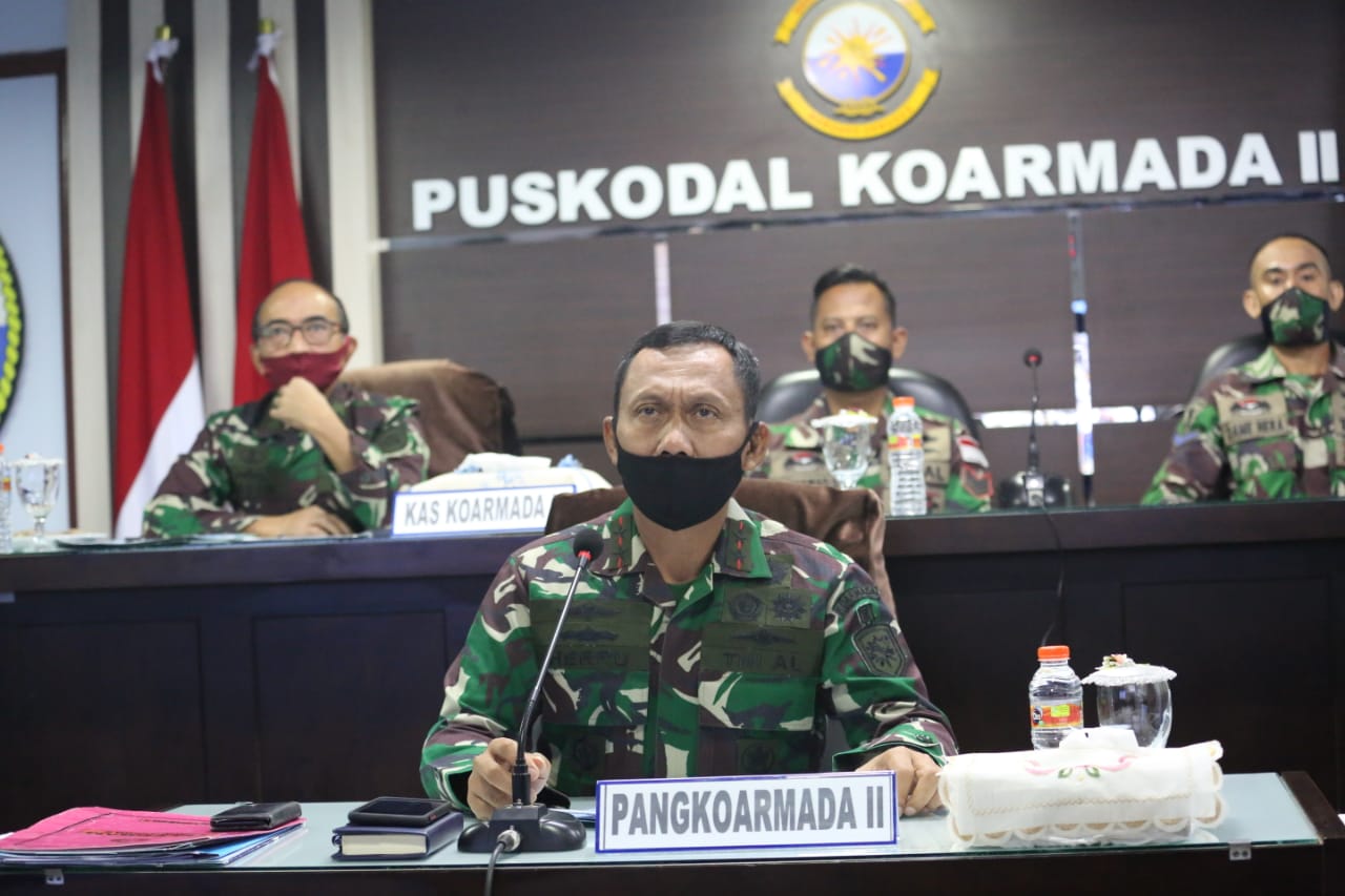 KLIKJATIM.Com | Surabaya - Pangarmada II, Laksda TNI Heru Kusmanto, menggelar acara tatap muka bersama para Pangkotama TNI AL wilayah Surabaya, para Kepala UPT Mabesal serta Danplek Rumdis TNI AL terkait penerapan PSBB III Surabaya Raya. Acara yang berlangsung di Gedung Candrasa Markas Koarmada II, Selasa (2/6/2020) itu membahas kesiapan kampung tangguh di setiap komplek rumah dinas (rumdis) dan rumah negara (rumneg) di wilayah TNI AL.