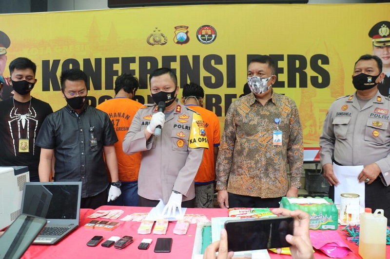 KLIKJATIM.Com | Gresik – Jajaran satreskrim Polres Gresik telah meringkus tersangka Cahyo Widodo (49), warga Dusun Bulusari Selatan RT 09 RW 03 Desa Bulusari, Kecamatan Tarokan, Kabupaten Kediri dalam kasus pembuatan uang palsu (upal). Hingga kini total upal yang sudah diproduksi dan diedarkan mencapai Rp 200 juta.