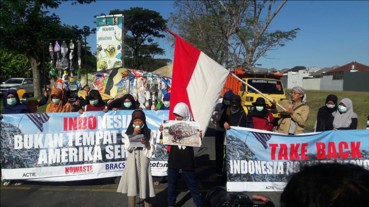 Koordinator aksi, Joko Berek mengatakan, saat ini Bea Cukai Tanjung Perak sedang memeriksa 38 kontainer dari Amerika. Menurutnya, sebagai negara maju seharusnya tidak membuang sampah ke wilayah Jawa Timur.
