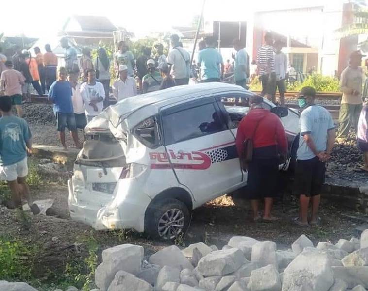 "Karena kuatnya tabrakan Mobil korban terpental ke sebelah kanan rel kereta sejauh 15 meter," tukas Siswoyo.